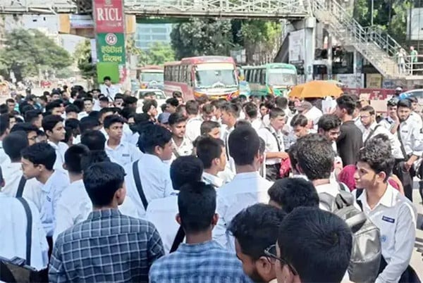 ঢাকা সেন্ট্রাল ইউনিভার্সিটি আইন–২০২৫’ সংশোধনের দাবি এবং সোমবার ঢাকা কলেজের শিক্ষক-শিক্ষার্থীদের মধ্যে হাতাহাতির ঘটনার প্রতিবাদে সায়েন্সল্যাব মোড় অবরোধ করেছেন ঢাকা কলেজের উচ্চমাধ্যমিকের শিক্ষার্থীরা।
